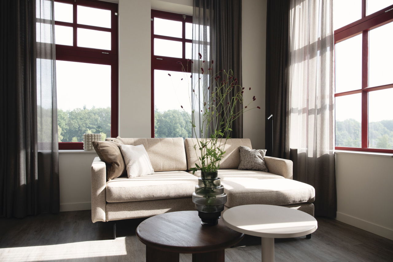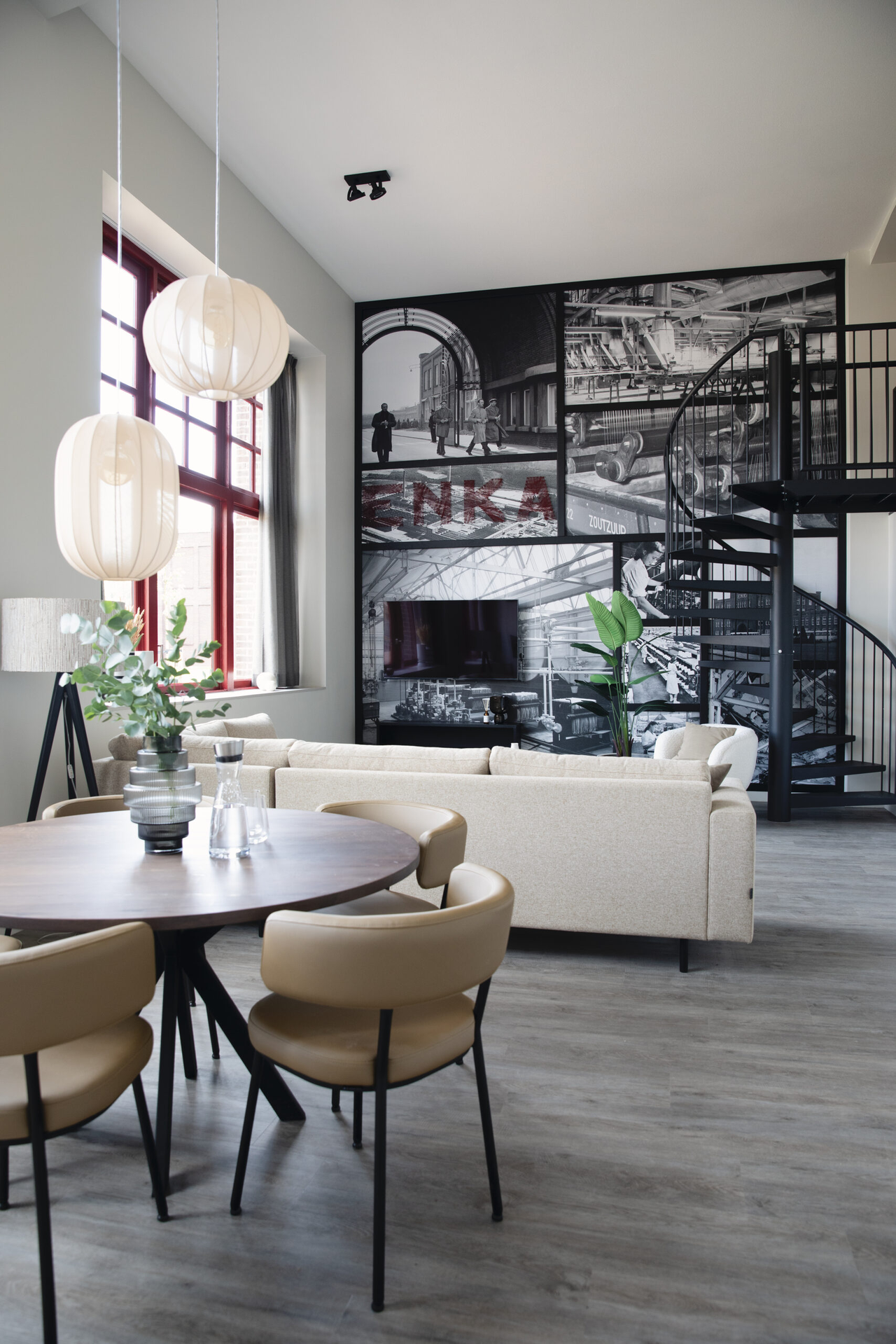 In een historisch pand, een oude kunstzijdefabriek uit 1919, mochten we een aantal prachtige short stay appartementen inrichten. Elk appartement is net even anders. Met een eigen indeling, interieur en charme. Een leuke uitdaging voor onze interieurdesigners.