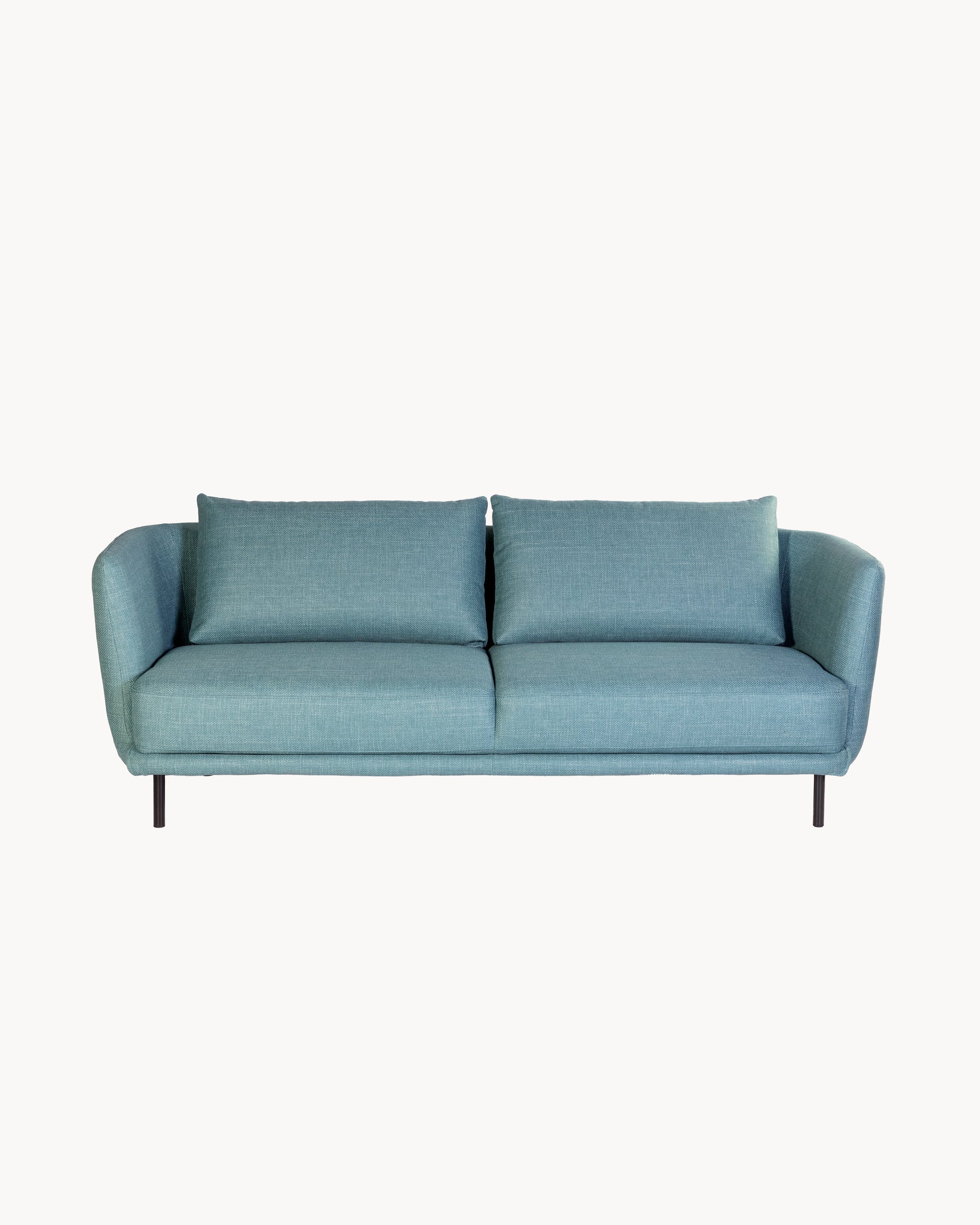 Stijlvolle bank met sierlijke rondingen en losse stevige rugkussens.