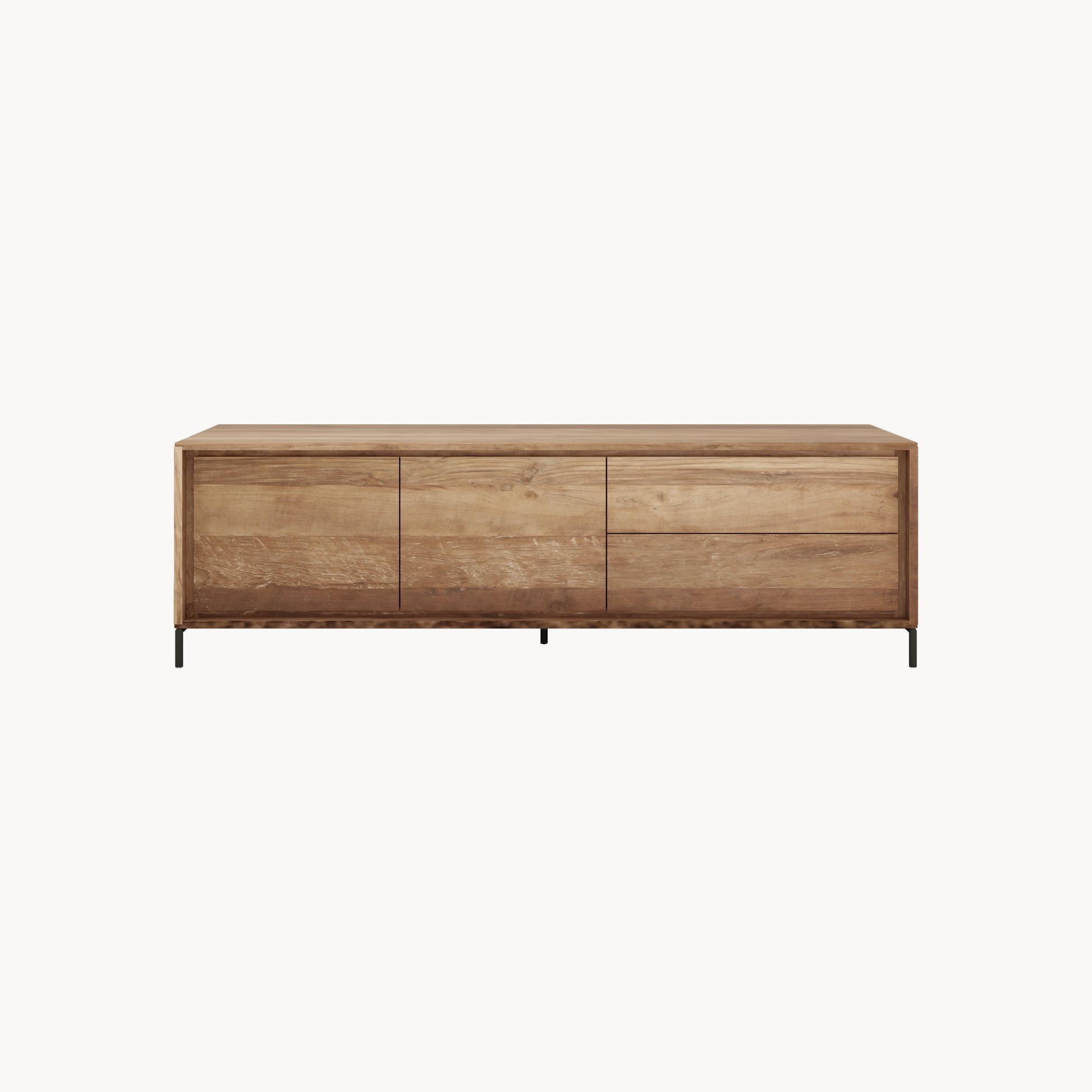 Het TV meubel Oxford is een stijlvol multifunctioneel meubel van natuurlijk hout in combinatie met stalen poten.
