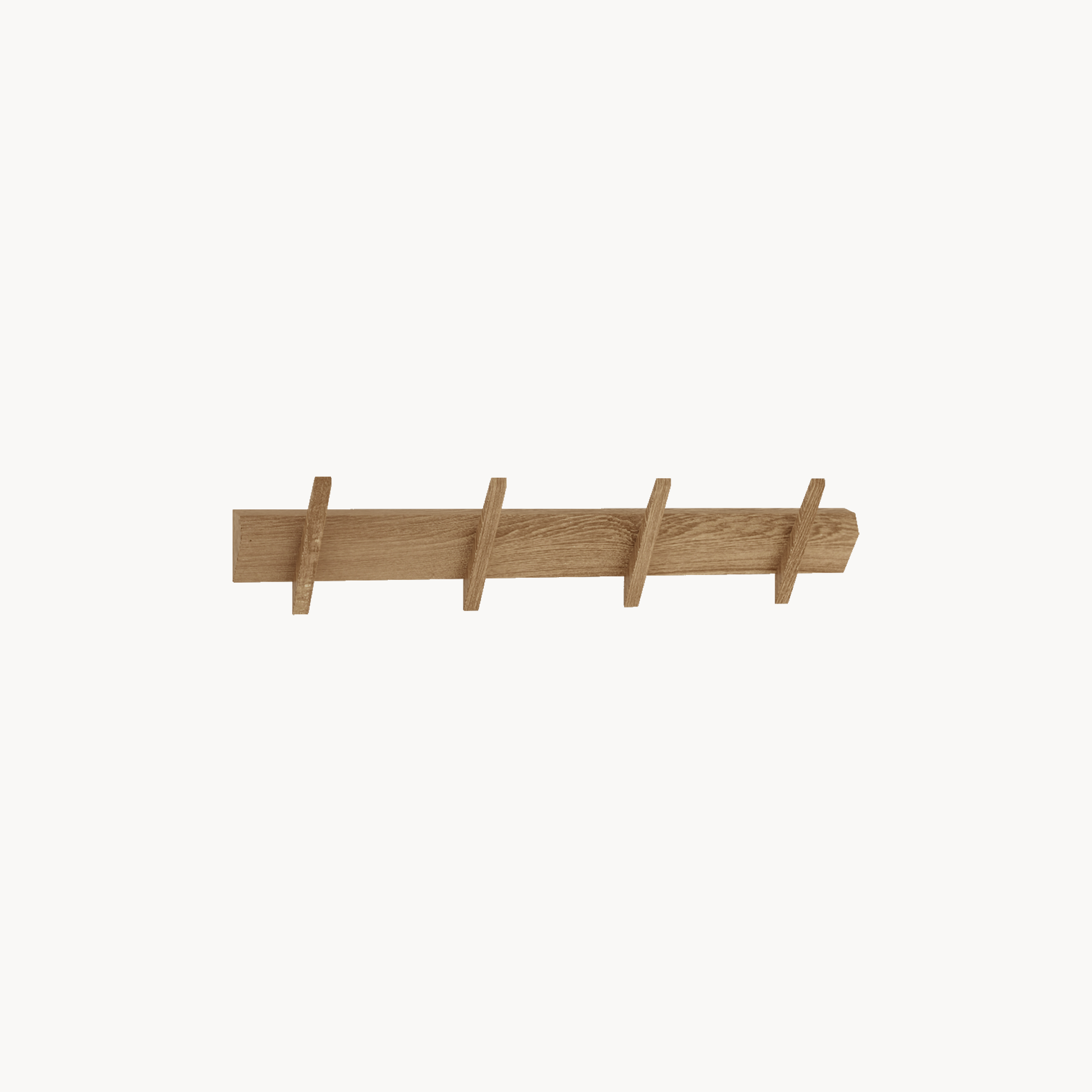 Een stijlvolle houten kapstok met stevige haakjes, perfect voor een georganiseerde entree.