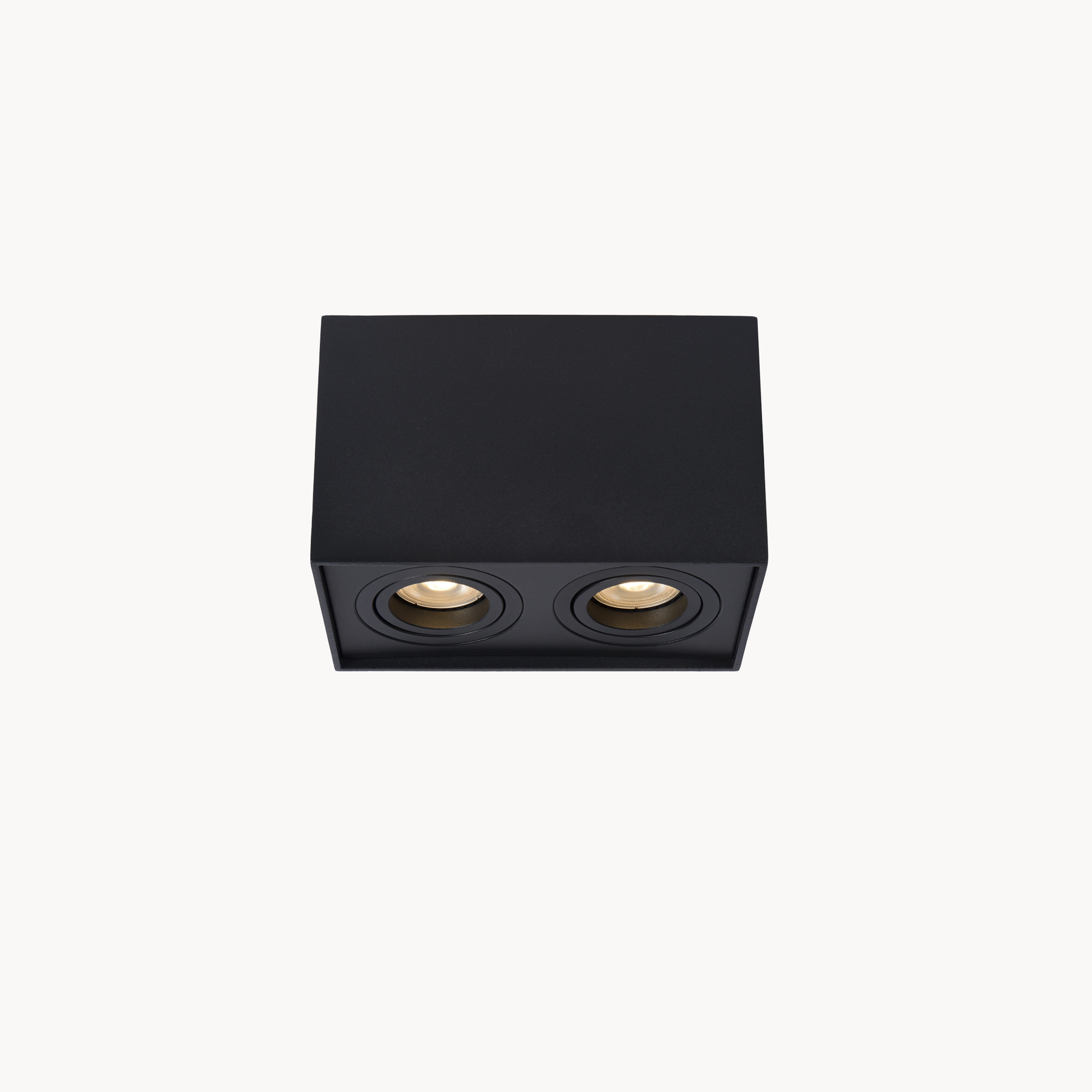 Dubbele opbouwspot. 360 graden draaibaar en kantelbaar. In zwart en wit.