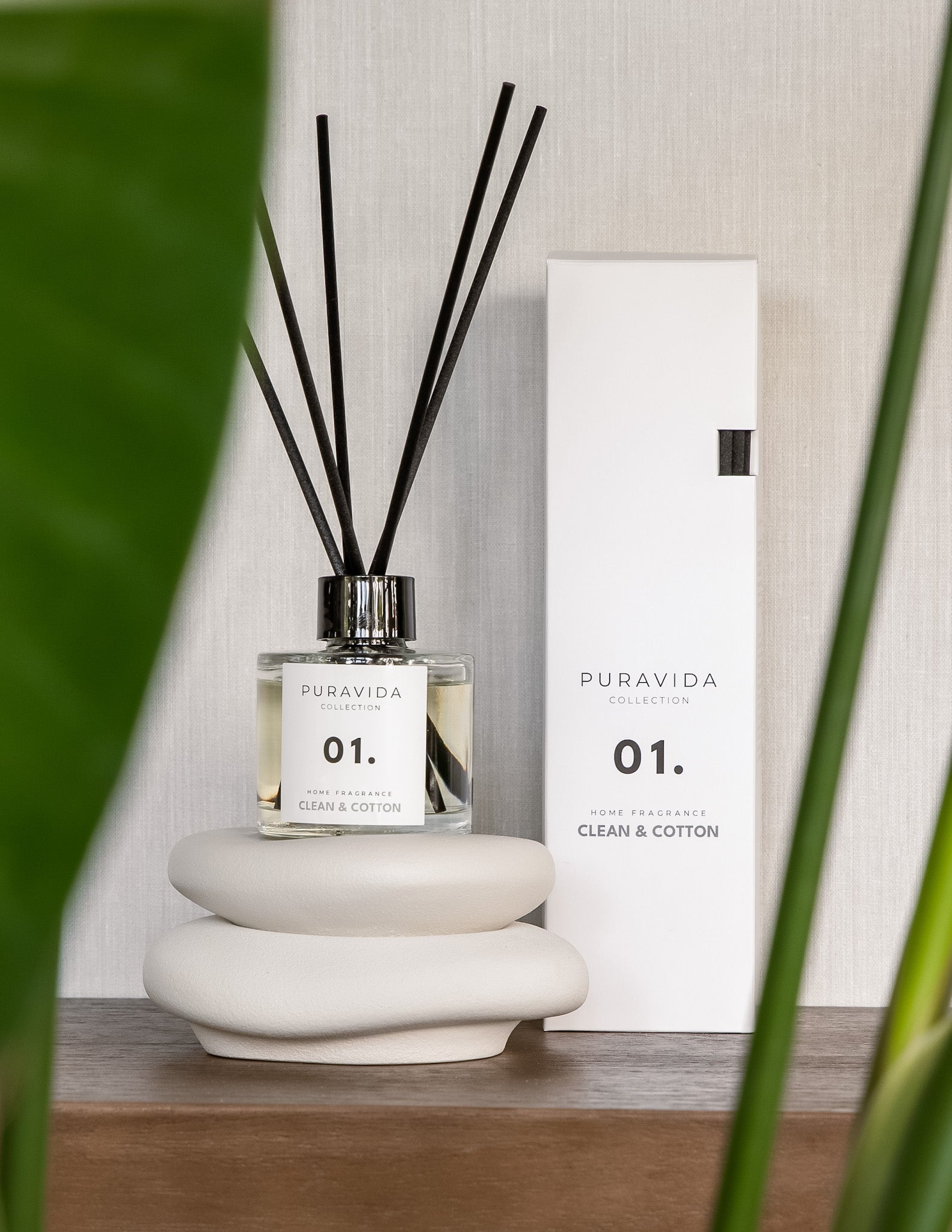 Breng een gevoel van frisheid en comfort in elke ruimte met de Clean & Cotton geur van Puravida Collection. Een subtiele, frisse geurbeleving die doet denken aan pas gewassen linnengoed en een serene opgeruimde omgeving.