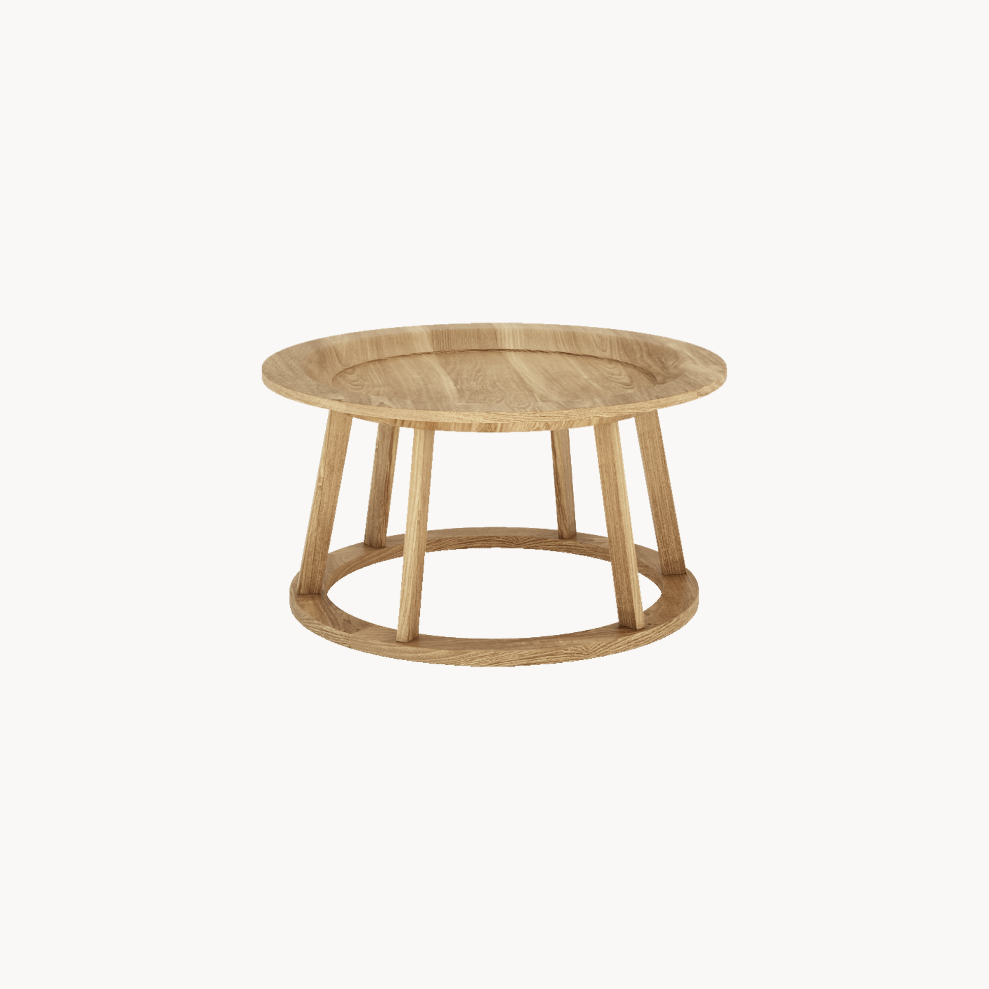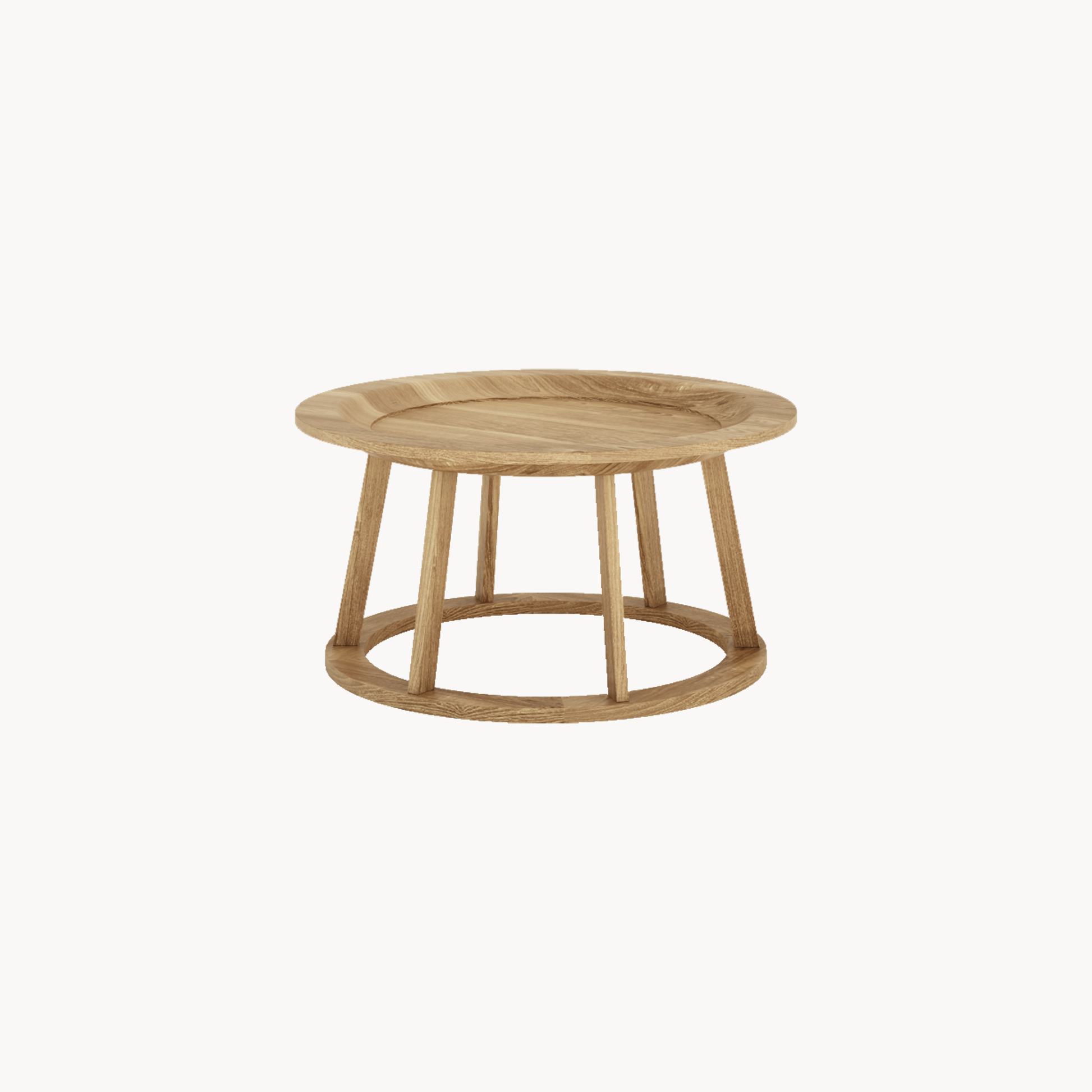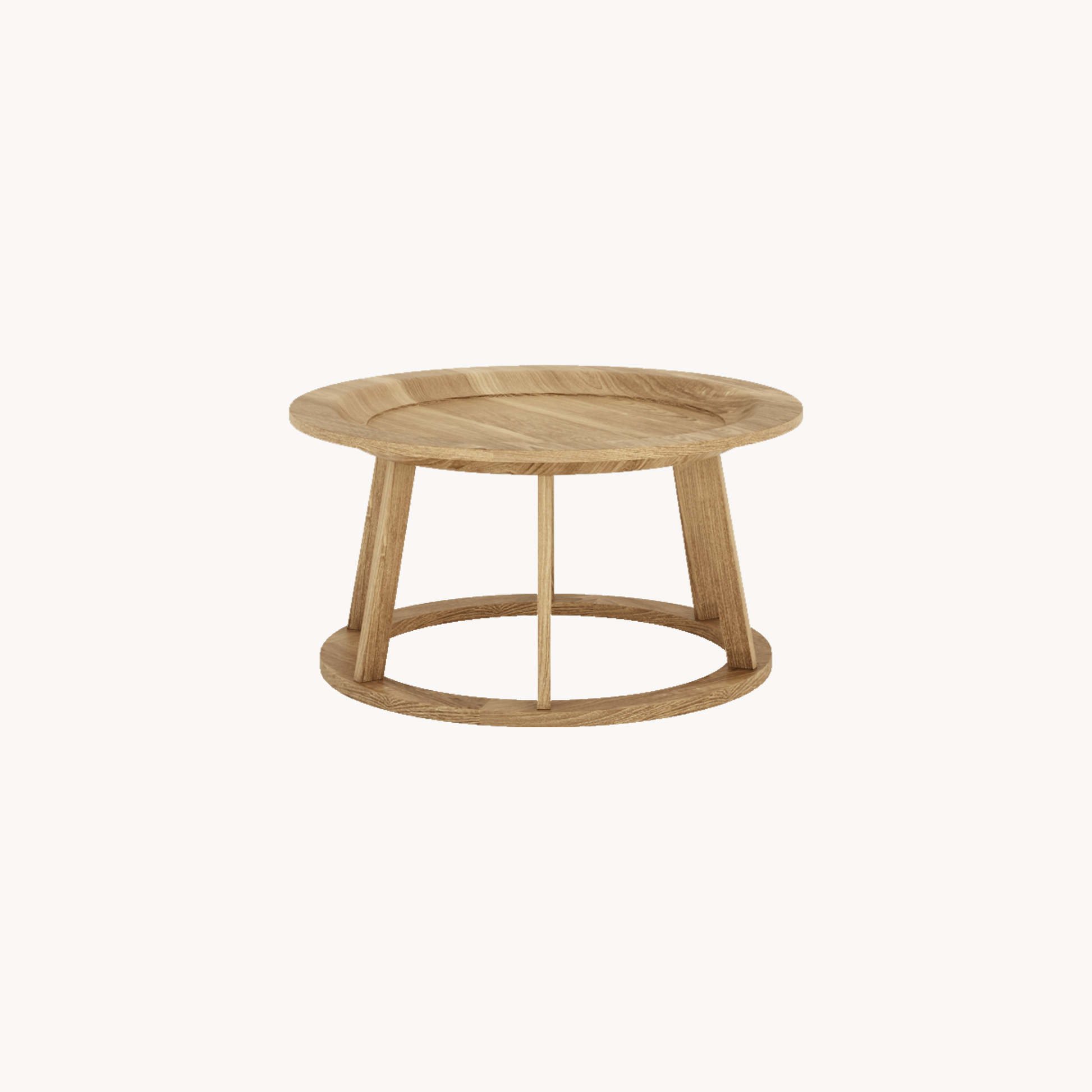 De elegante salontafel Cross Resort is volledig van hout en heeft een luchtig trapeziumvormig frame dat op de vloer ligt. Dit ontwerp zorgt voor een stabiele basis en een eigentijdse uitstraling.