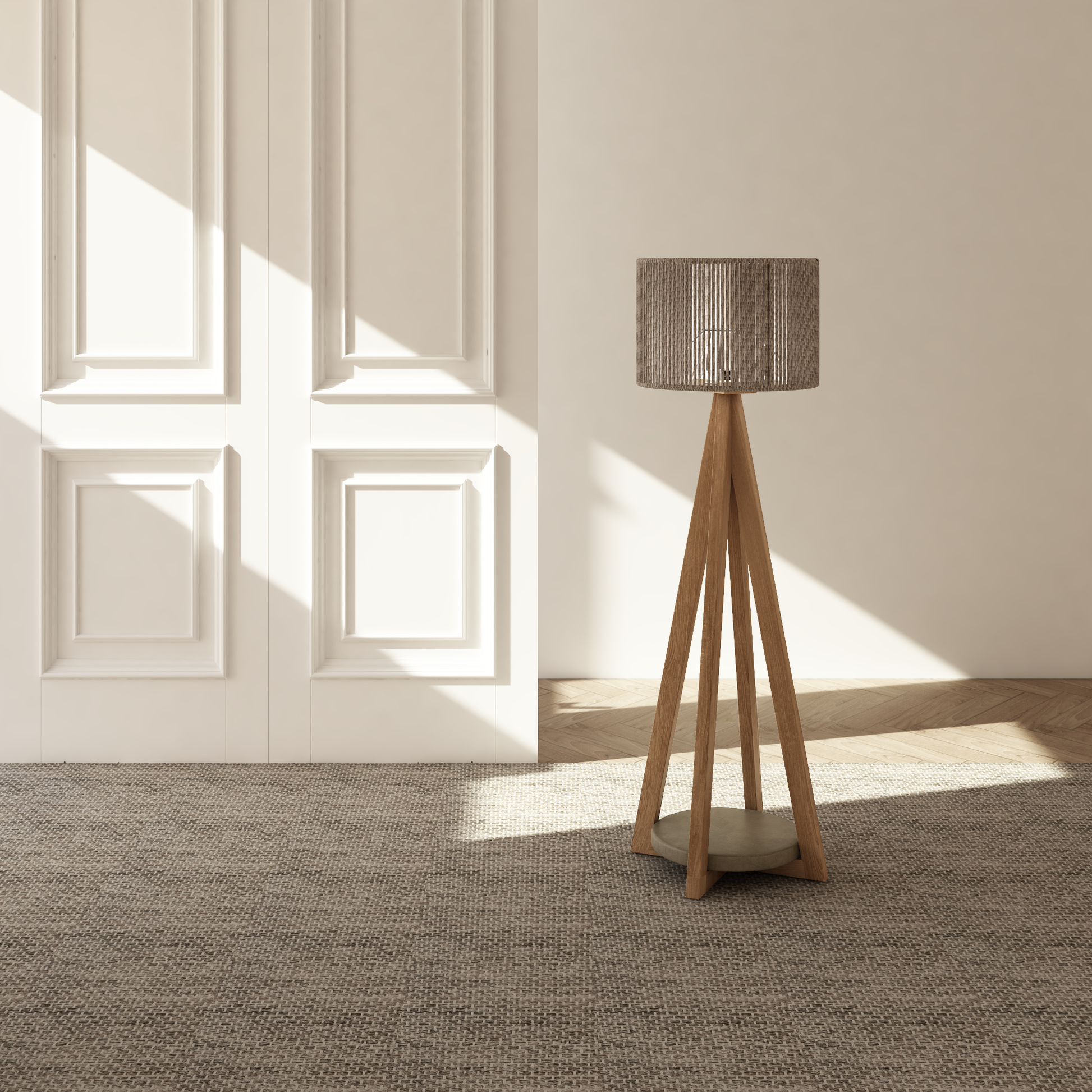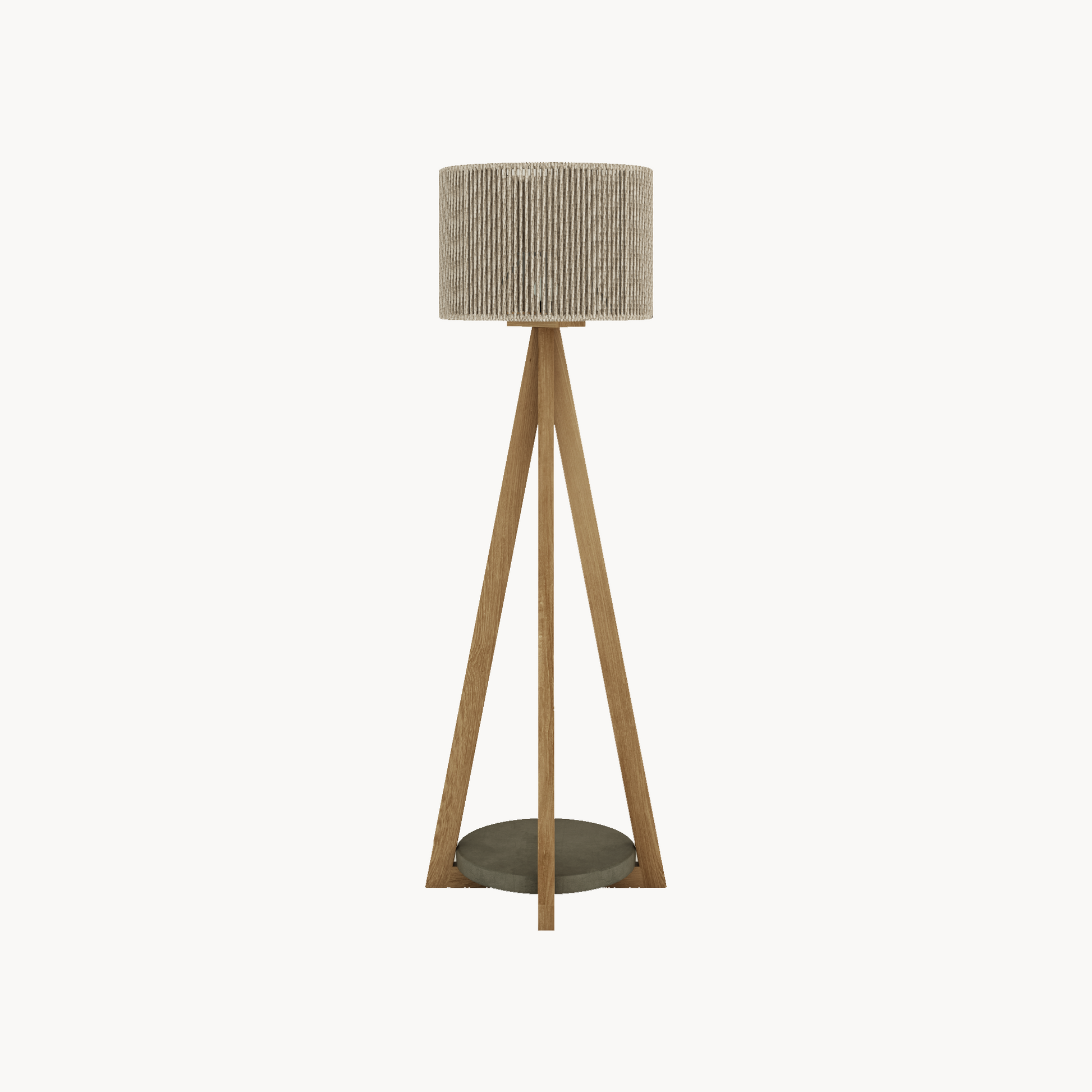 Deze stijlvolle vloerlamp is verkrijgbaar met lampenkappen in verschillende materialen: touw, linnen, waterhyacinth en webbing.