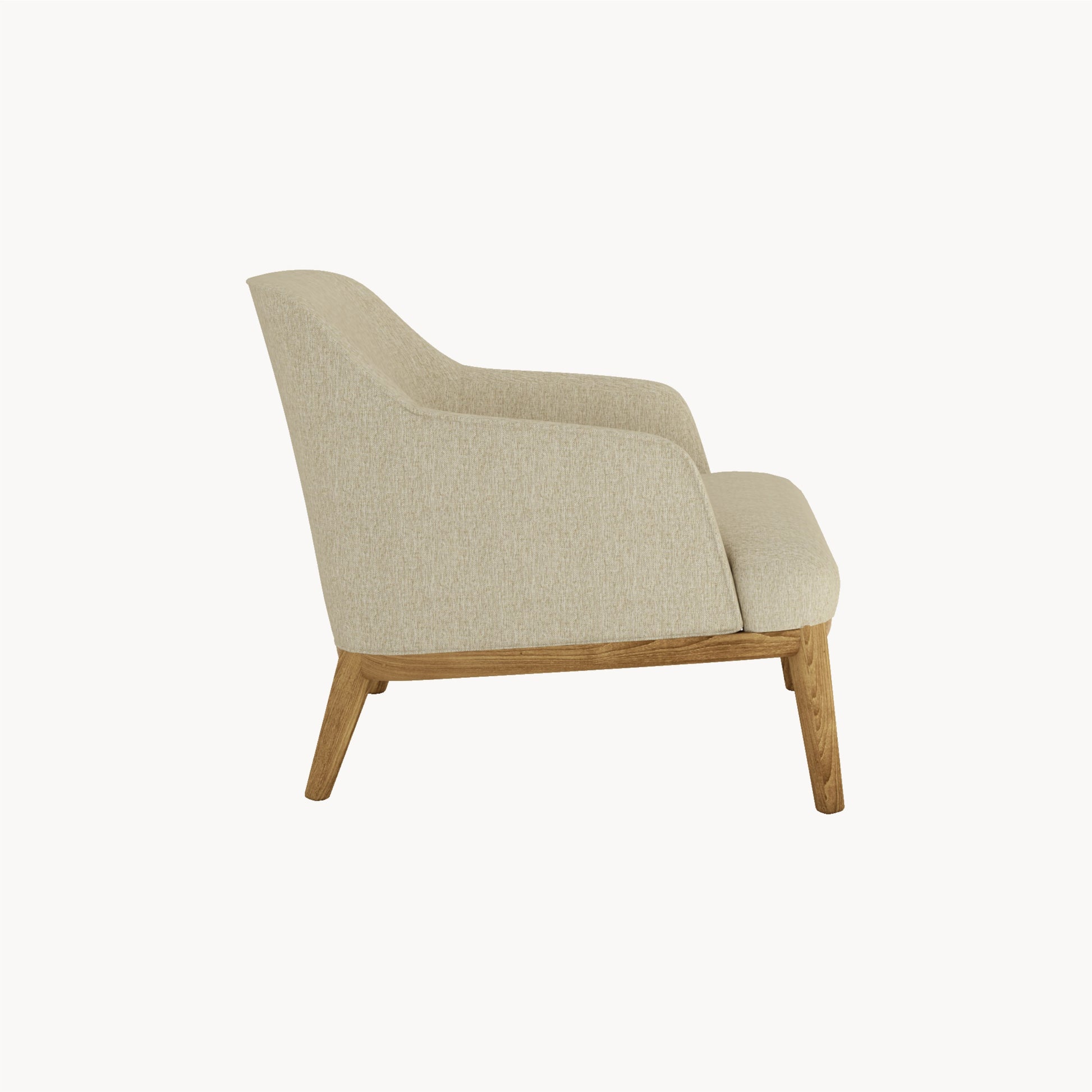 De fauteuil Halo heeft een elegant design met een gestoffeerde kuipzitting die zowel comfort als stijl biedt. De zit kuip zorgt voor een uitnodigende uitstraling, terwijl de armleggers extra ondersteuning en luxe toevoegen. Het massief houten onderstel geeft de fauteuil een stevige basis en voegt een warme, natuurlijke touch toe aan het geheel.