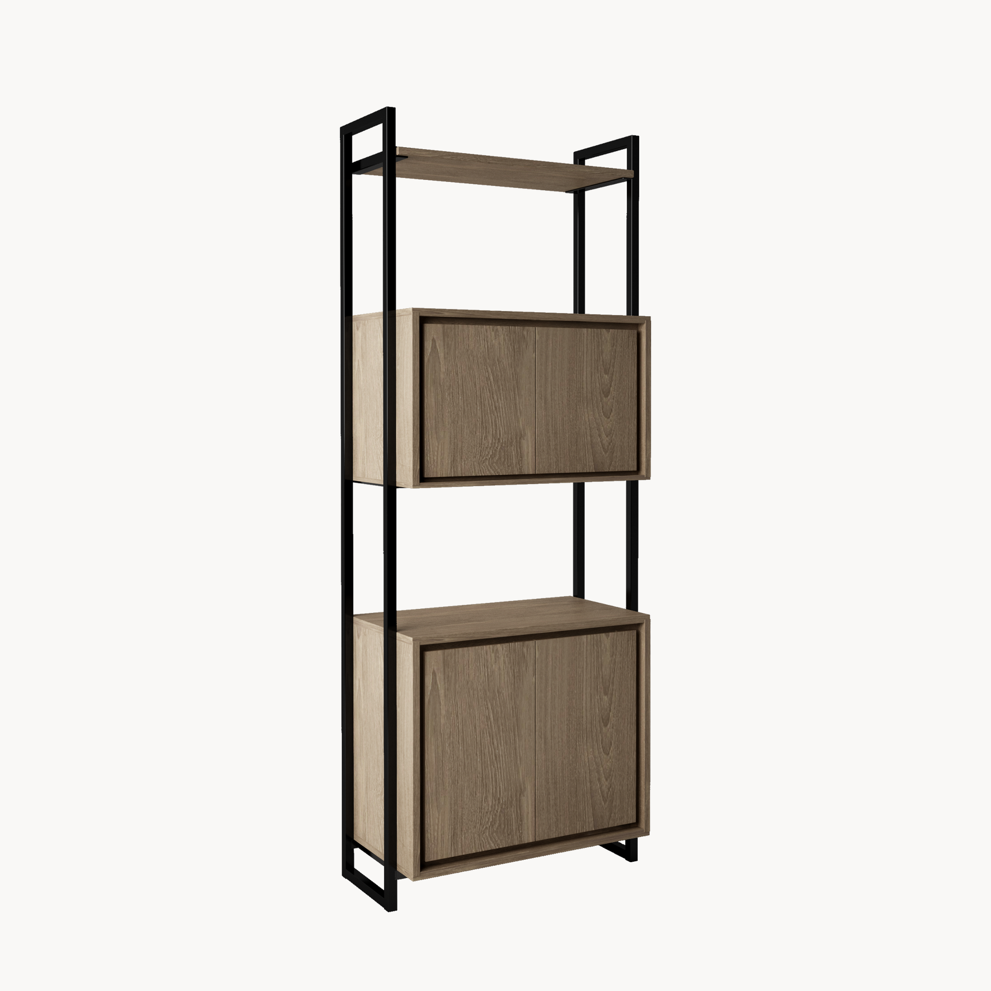 De veelzijdige kast Bazel met zijn stoere karakter door de combinatie van staal en massief hout, kan zowel in de woonkamer als in een slaapkamer fungeren als opbergkast.