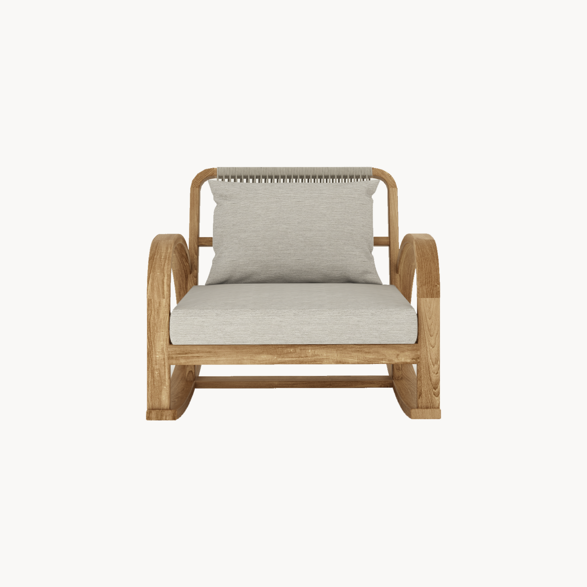 Deze schommelfauteuil is een elegante aanvulling op je interieur, vervaardigd uit natuurlijk hout dat een warme uitstraling biedt. De sierlijke rondingen van het ontwerp zorgen voor een moderne en stijlvolle look. Het zitkussen biedt optimaal comfort, terwijl de rug is gemaakt van gespannen outdoor rope, wat niet alleen duurzaam is, maar ook een sfeervolle touch toevoegt. Met een los kussen voor extra ondersteuning, nodigt deze fauteuil uit om te relaxen en te genieten van een moment van rust.