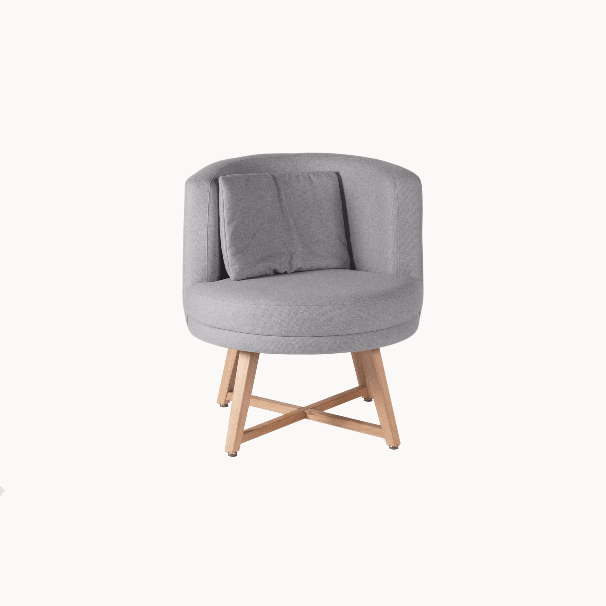 De ronde lounge fauteuil Verona is een elegante toevoeging aan elke ruimte. Met zijn zachte, afgeronde vormen biedt deze fauteuil optimaal zitcomfort. De gestoffeerde zitting en rug zorgen voor een luxe uitstraling, terwijl het subtiele houten onderstel met kruisvormige poten een stijlvolle en stevige basis biedt.