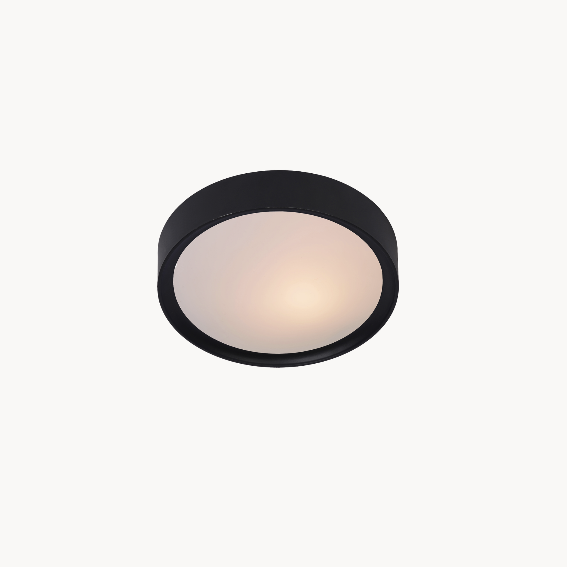 Eenvoudige vorm gecombineerd met een mooie afwerking maakt deze plafondlamp geschikt voor iedere ruimte.  Beschikbaar in zwart of wit en in 25 cm of 33 cm, met 1 of 2 lichtbronnen.