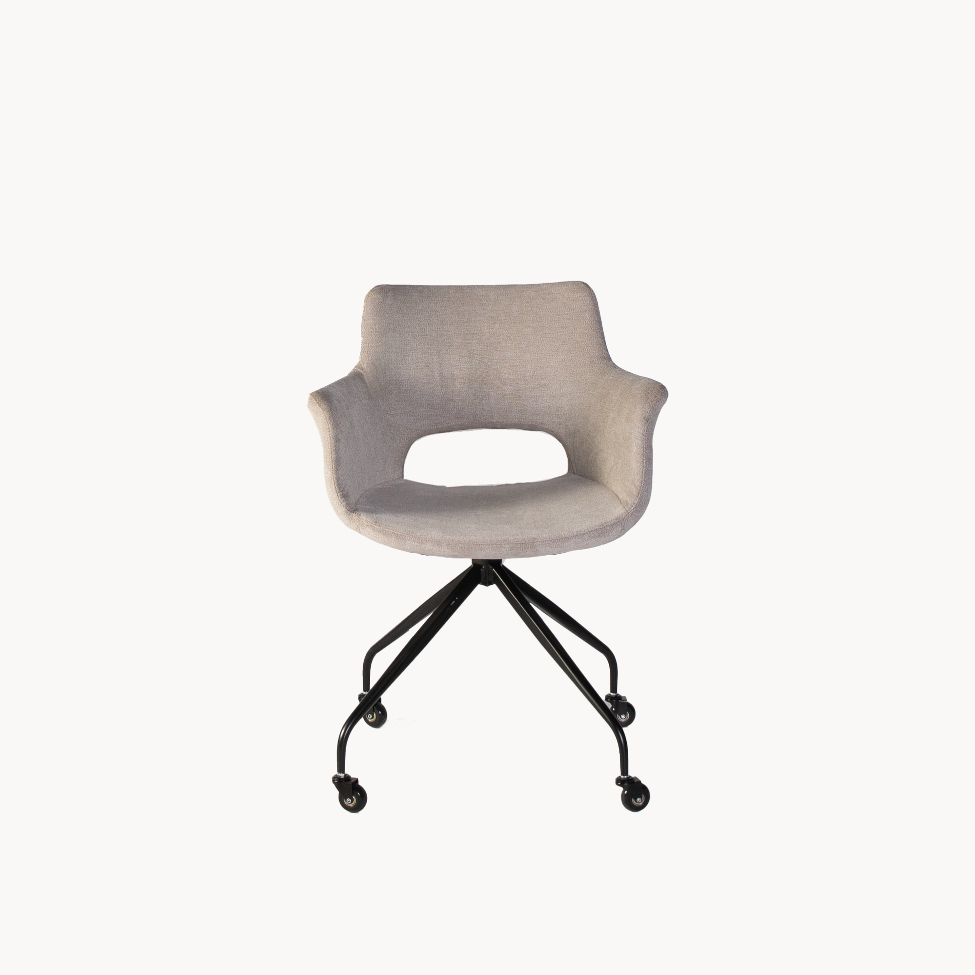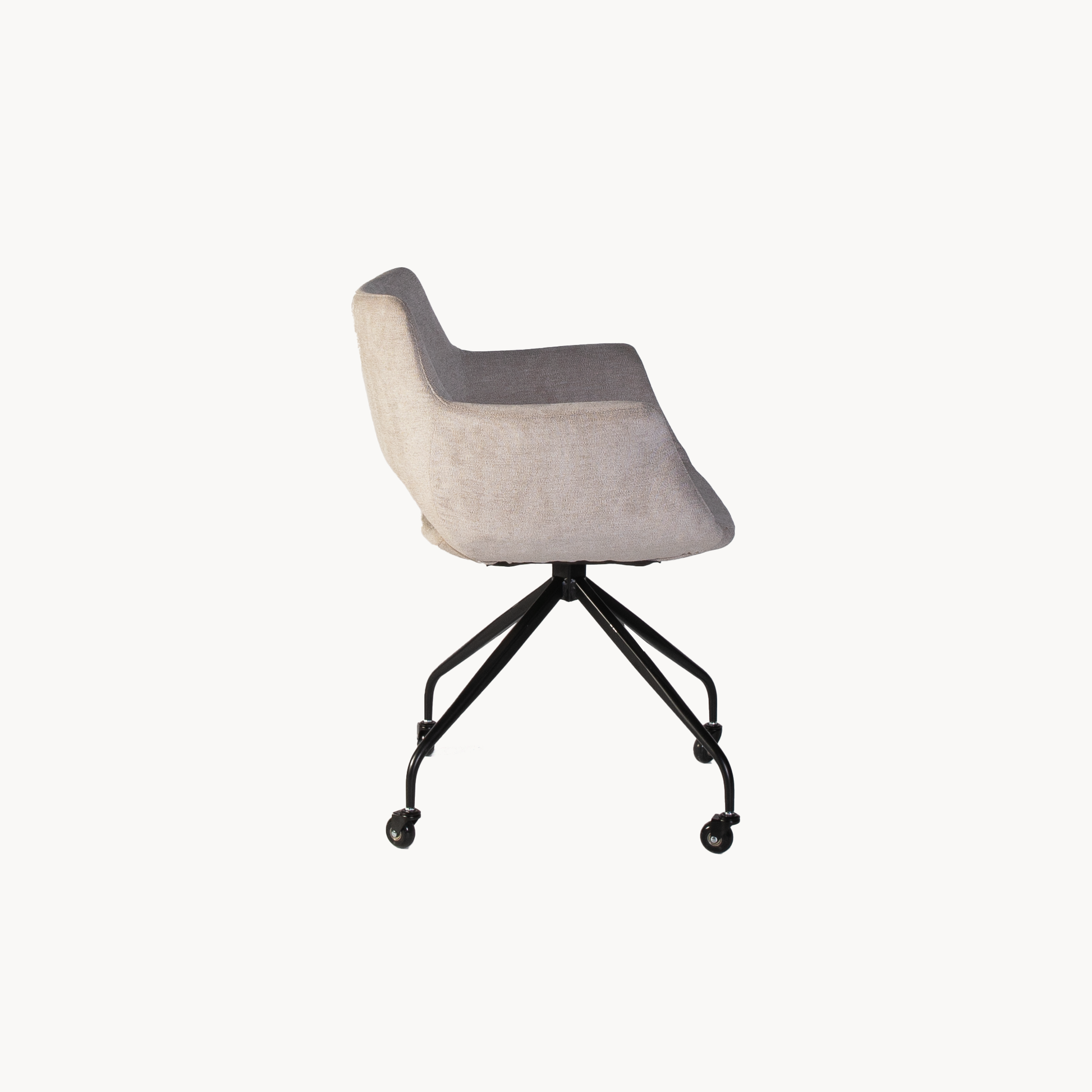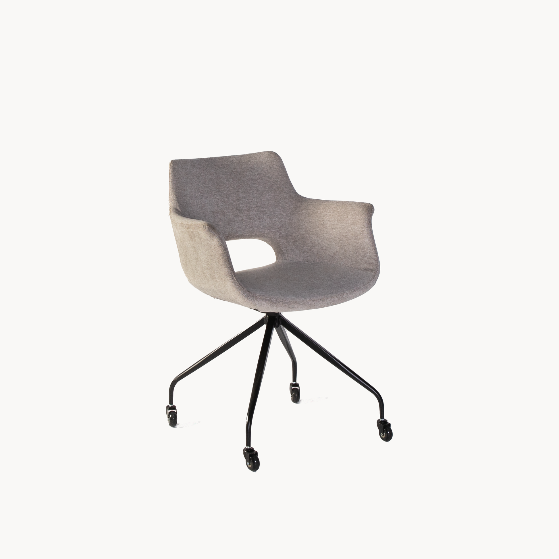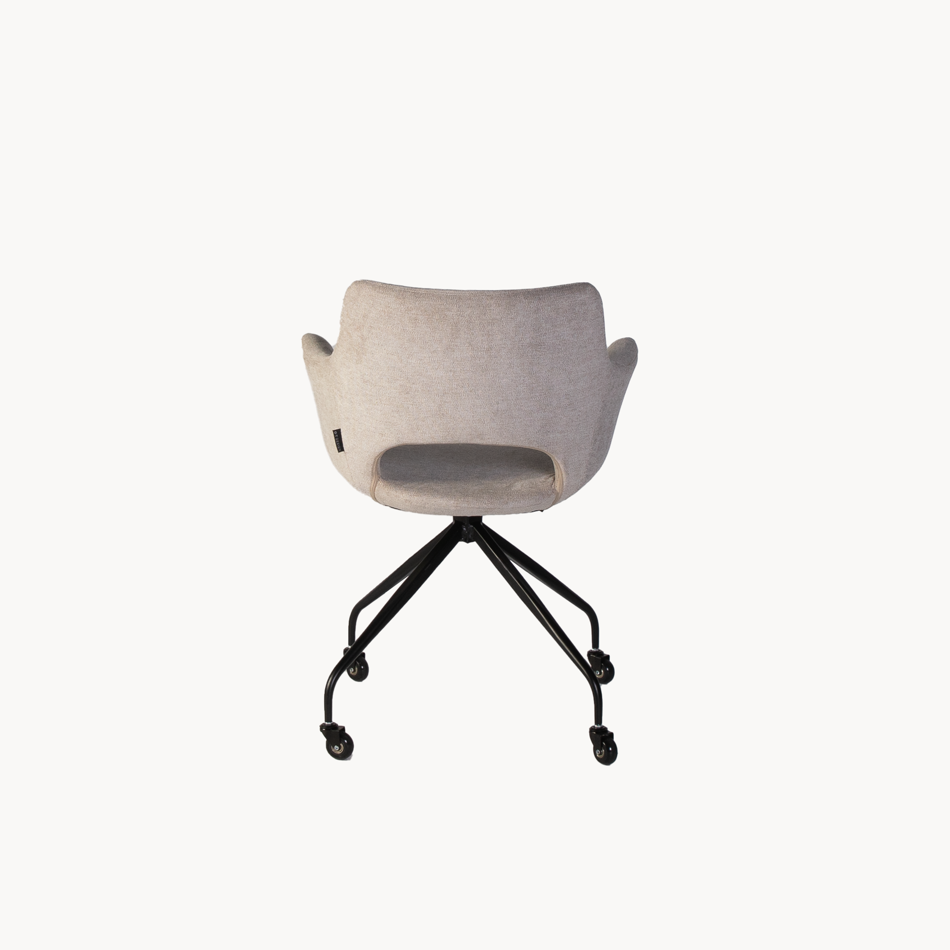 De stoel is uitgerust met een elegant stalen stalen onderstel op vier soepel rollende wieltjes, wat hem ideaal maakt voor flexibel gebruik in vergaderruimtes, kantoren of gewoon als eetkamerstoel. De geïntegreerde armleuningen bieden extra ondersteuning en comfort tijdens het zitten. Een perfecte mix van stijl, comfort en mobiliteit.