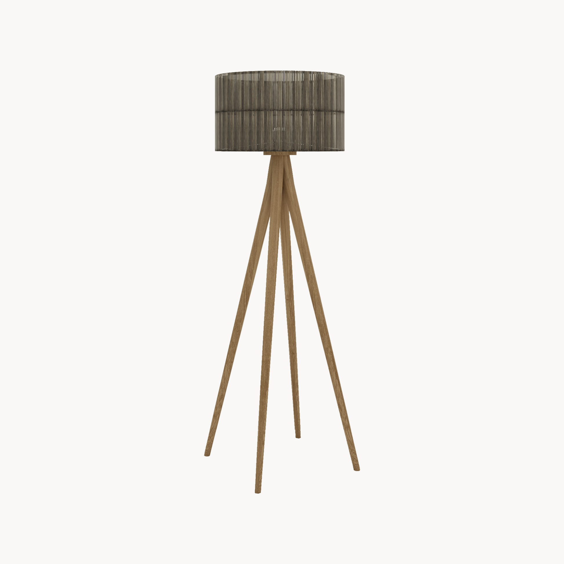 Deze stijlvolle vloerlamp combineert een natuurlijk design met veelzijdigheid. De lamp staat stevig op vier houten poten, die zorgen voor een stabiele basis en een warme, organische uitstraling. De poten zijn vervaardigd uit hoogwaardig hout met een natuurlijke afwerking, waardoor de nerven en structuren mooi zichtbaar blijven.